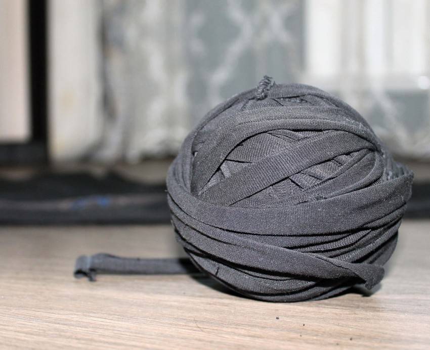 Процесс создания пряжи относительно несложный, хотя здесь необходимо учитывать некоторые моменты. К примеру, плотность ткани влияет на толщину полос. Так, чем трикотаж толще, тем уже нужно резать полоски. Если для пряжи использовалась одежда с рукавами, то выкидывать в мусорное ведро не стоит, ведь они нам также понадобятся. Разрезая небольшие куски ткани по спирали, мы получим полосы приемлемой длины, которые затем можно сшить или связать друг с другом.