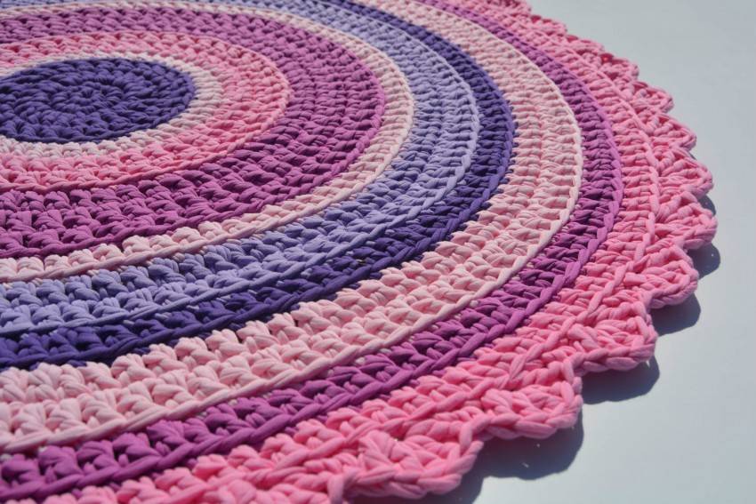 Предлагаем вместе с нашим мастер-классом сделать коврик круглой формы на вязаной основе.