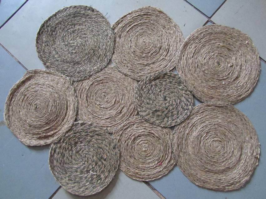 Идеально смотрятся плетеные коврики, соединенные в виде композиции.