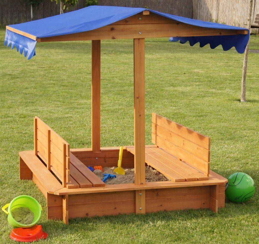Зона отдыха с мобильным навесом предполагает наличие сборно-разборного тента-шатра или беседки. В жаркий полдень, когда не очень хочется находиться на солнцепеке, а тем более играть в подвижные игры, тент служит хорошей защитой и создает тень. При этом навес можно легко демонтировать и опять превратить площадку в территорию для активных игр.