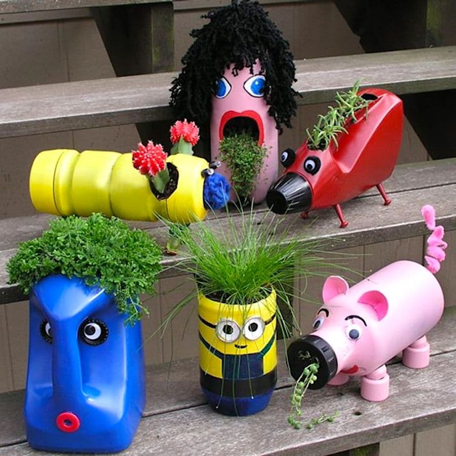 Используйте в качестве горшков старые вещи. Для таких целей отлично подойдут чемоданы, чайники, ботинки, шляпы, шины, стулья и многое-многое другое. Также можете использовать пластиковые бутылки: и Вам ненужно лишний раз тратиться, и природе польза!