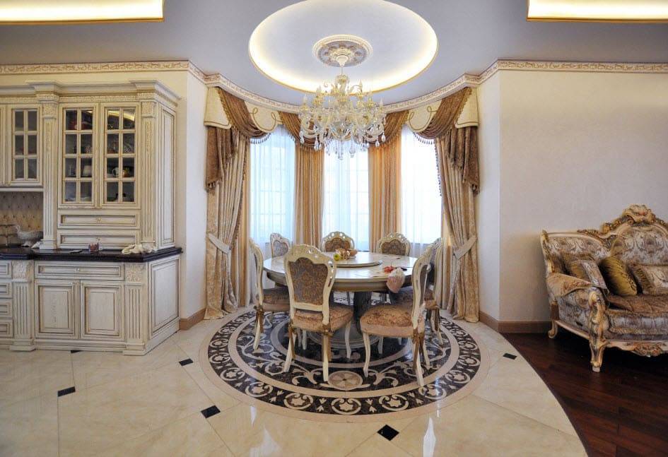- Напольное покрытие – клинкерная или мраморная плитка.