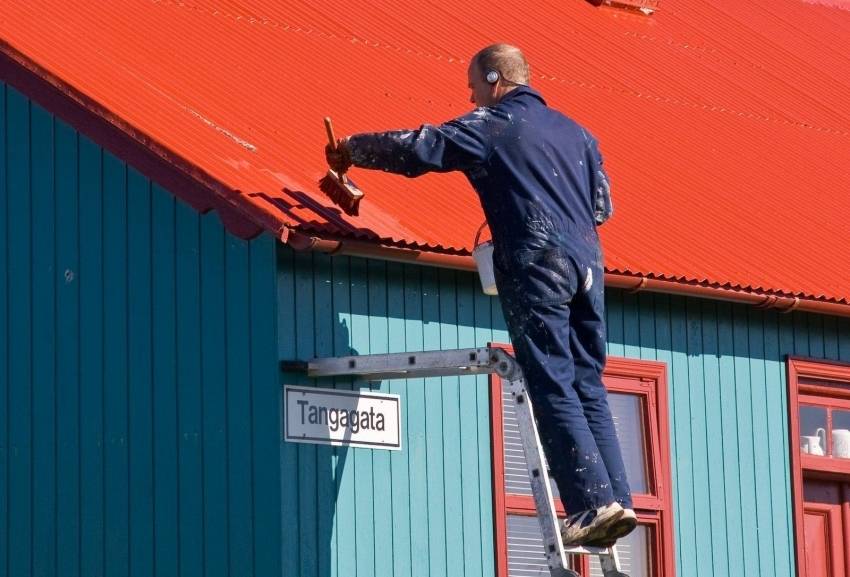 Поэтому любые лакокрасочные материалы на водной основе для покраски крыш не используются. Нельзя применять алкидные и масляные краски. Причина – низкая эластичность после высыхания. И хотя именно эти две разновидности раньше использовались для покрытия металлического кровельного материала, крыши приходилось перекрашивать с завидным постоянством, что влияло на себестоимость содержания кровельных конструкций.