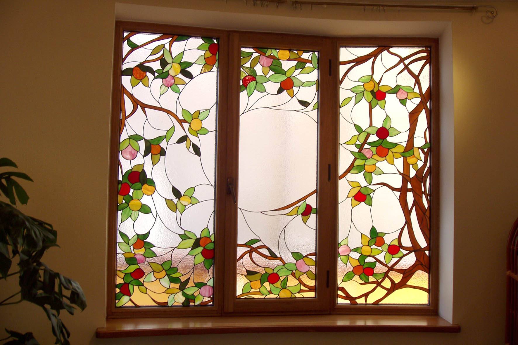 Изготовление витражей методом печати на пленку, а потом с помощью плотера приклеивается к стеклу