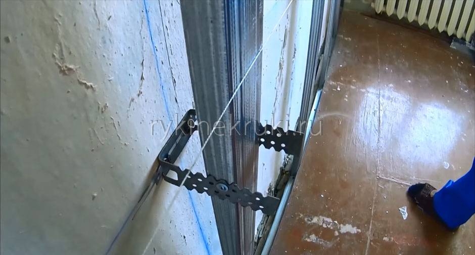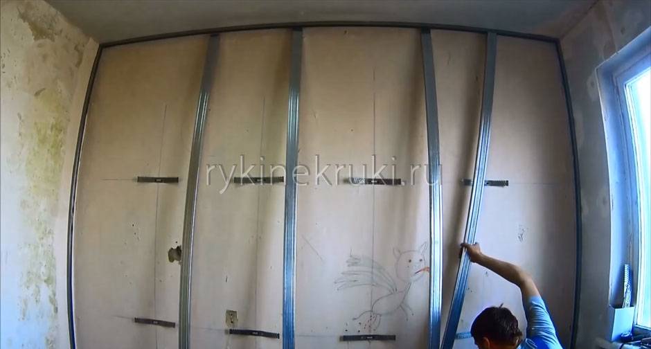 В некоторых случаях при отделочных работах нет возможности выровнять стены по разным причинам и в этом случае приходится закреплять листы ГКЛ к не выровненным стенам.