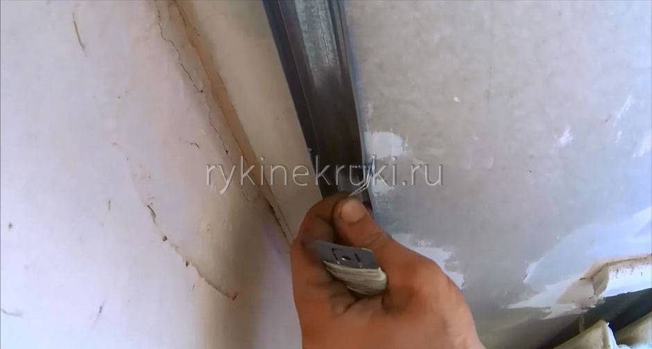 - крепим по периметру направляющие профили: один к потолку, другой к полу, боковые размещаем на стенах;