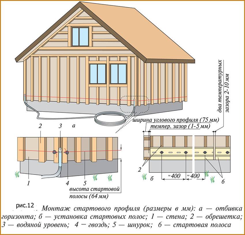 Монтаж фиброцементного сайдинга, схема