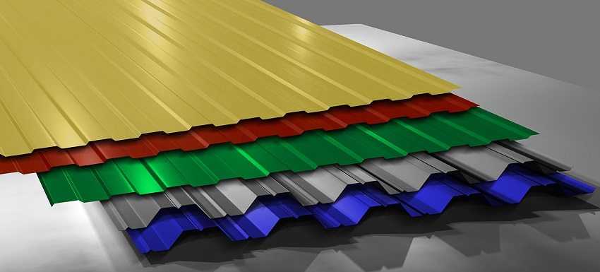 Листы профнастила различной расцветки и с разной высотой гофры.