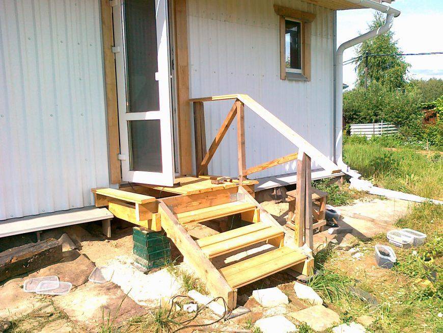Деревянное крыльцо частного дома. Фото каркасной конструкции