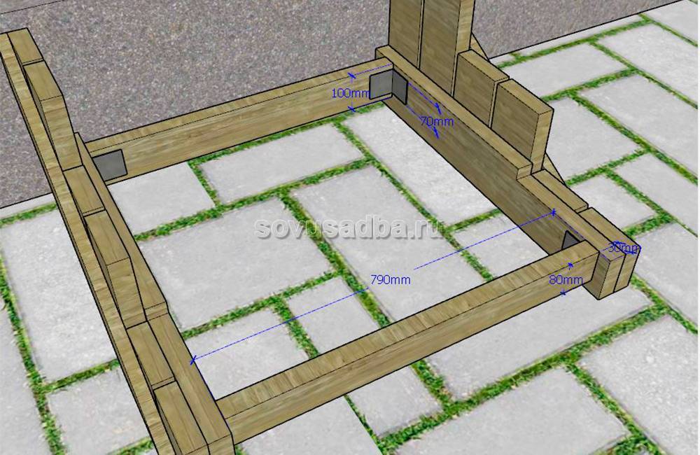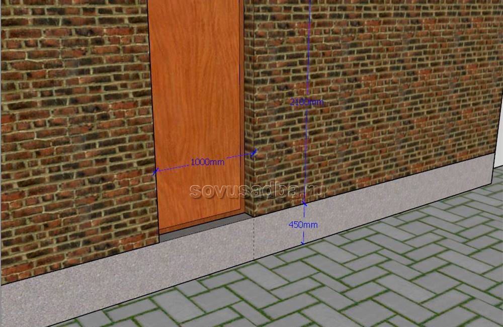 Очень важно рассчитать размеры площадки и ее расположение относительно входа в дом. Помните, что площадка должна находиться на 5-7 мм ниже уровня входного проема.