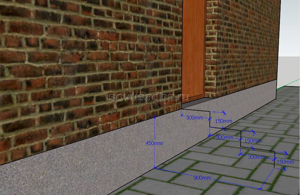 Количество ступеней рассчитывается при делении высоты фундамента на высоту ступеньки.