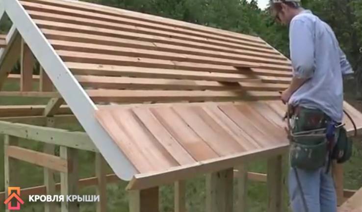 Между элементами обязательно оставляйте зазор 5–6 мм, он нужен для компенсации линейных расширений, возникающих после намокания дерева. Если зазора не будет, то покрытие может подрываться. Как следствие – придется ликвидировать протечки. Выбирать правильное положение стыков надо за счет различной ширины дранки.