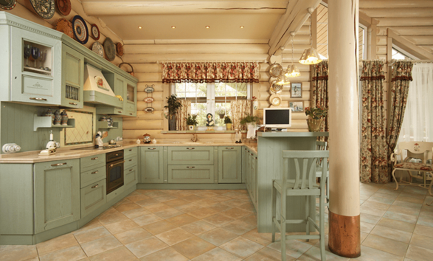 | Кантри | Он все более популярен в нашей стране. Сельская направленность идеально подходит для загородного коттеджа. Используется только необходимая мебель, кухонное оборудование, обязательно добавляются аксессуары и акценты сельского направления. |