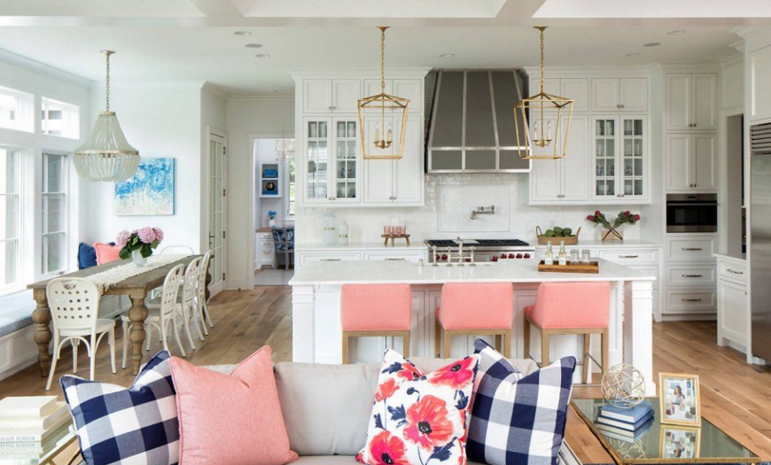 Также придется заранее расставить акценты, что важнее: обеденная группа, место приготовления пищи или место для отдыха. Ответ на этот вопрос находится на поверхности: где вы проводите больше времени? За приготовлением пищи или поглощая ее?