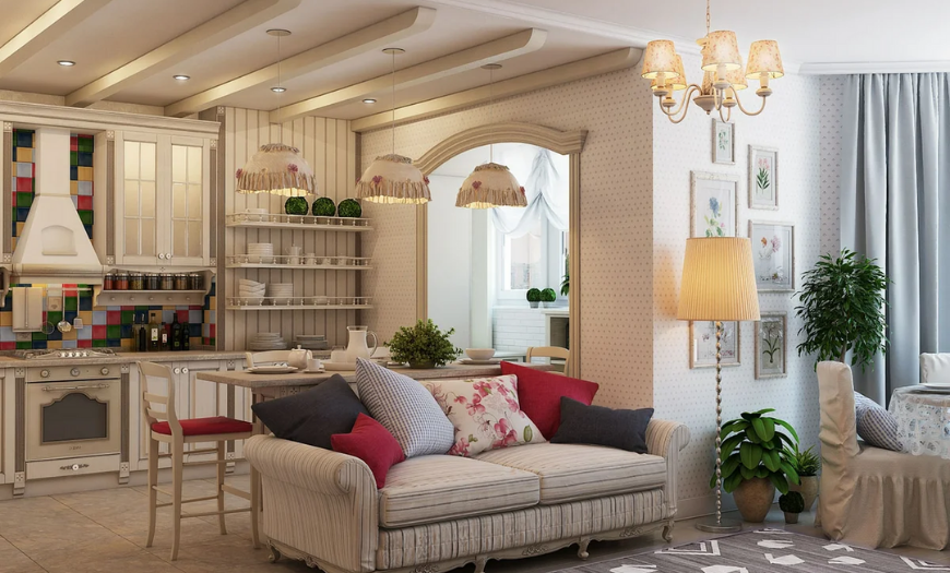 | Прованс | Один из самых уютных видов. Его часто выбирают для создания комфортного семейного жилья. Подходит для большого и светлого помещения. Используются: светлые тона, текстильные элементы, небольшое количество нужно кухонного оборудования и так далее. |