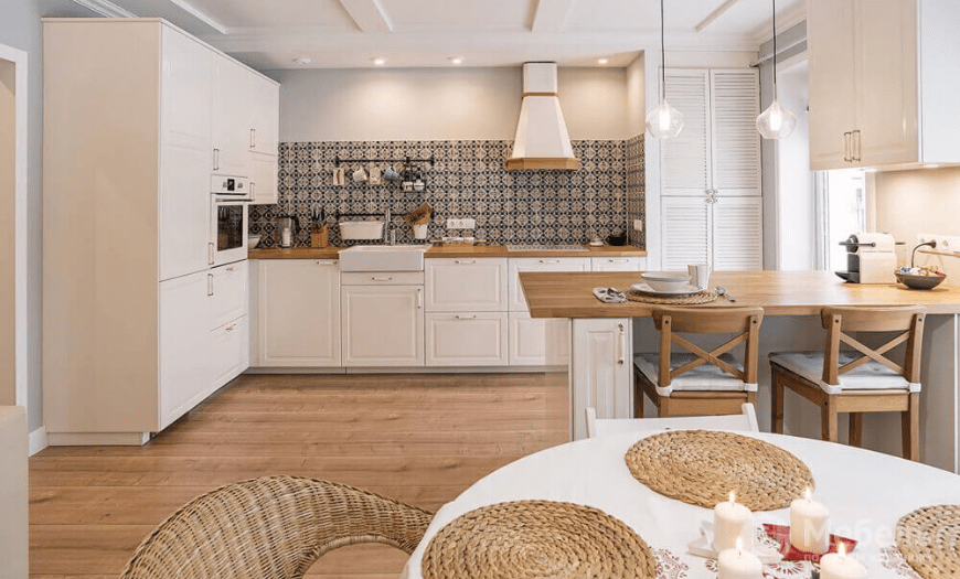 | Классика | Часто его выбирают для оформления всего жилья, поэтому кухня отлично будет сочетаться с другими комнатами, включая столовую. Выбирают для оформления природные материалы: дерево, камень и другие. |