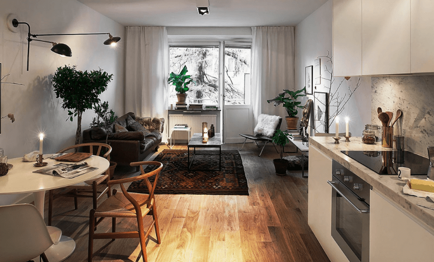 Если обеденная зона для вас является приоритетной, не экономьте на столе и стульях. Они должны быть удобными для вас и ваших домочадцев.