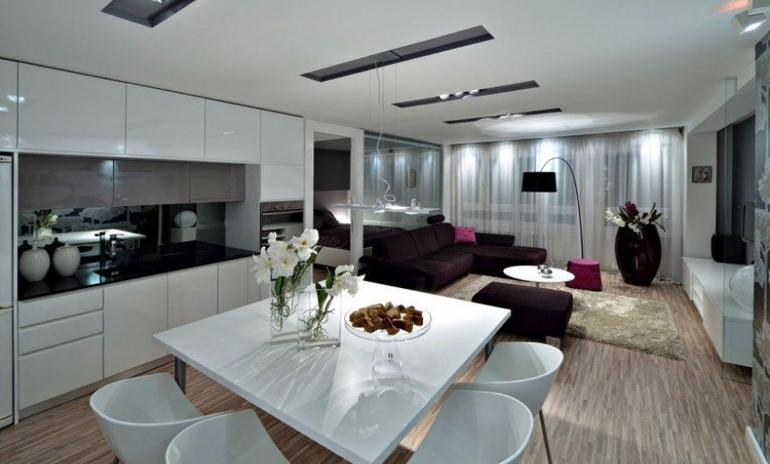 Подборка дизайн-проектов современных помещений гостиных, совмещенных с кухней и столовой вдохновит на поиски собственных дизайнерских идей, цветовых решений и оригинальных сочетаний.