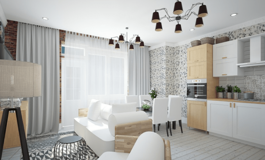 Продумайте стилистическое решение всех элементов объединенной комнаты..