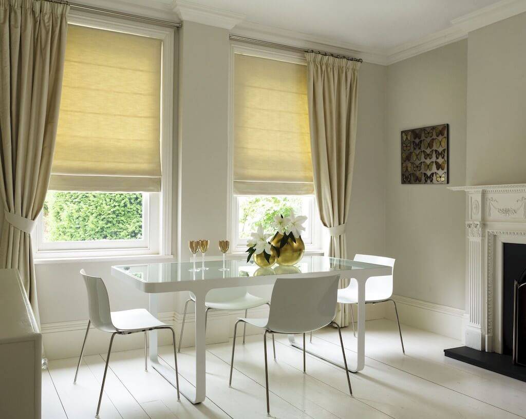 римские — один из лучших вариантов для кухонной зоны. Римские шторы представляют собой полотно, которое может подниматься и опускаться, соотвественно, открывая и закрывая окно. В сложенном состоянии образуют красивые складки. Отличаются элегантным внешним видом, благодаря которому могут использоваться даже в классическом интерьере. За счет красоты и функциональности считаются идеальным способом оформления кухонного окна;