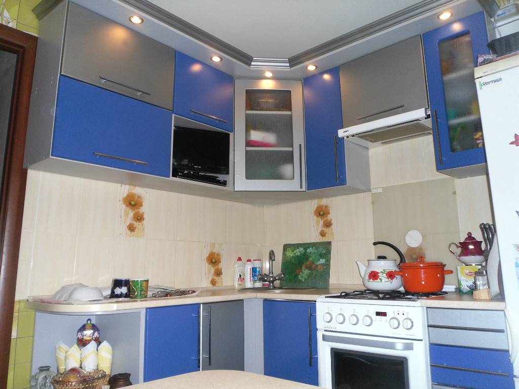 Кухонный гарнитур синего цвета — он может быть изготовлен из дерева, ДСП и МДФ с элементами стекла и пластика. Гарнитуры в подобных холодных тонах больше подходят для обустройства кухонь в современных стилях (минимализм, хай-тек).