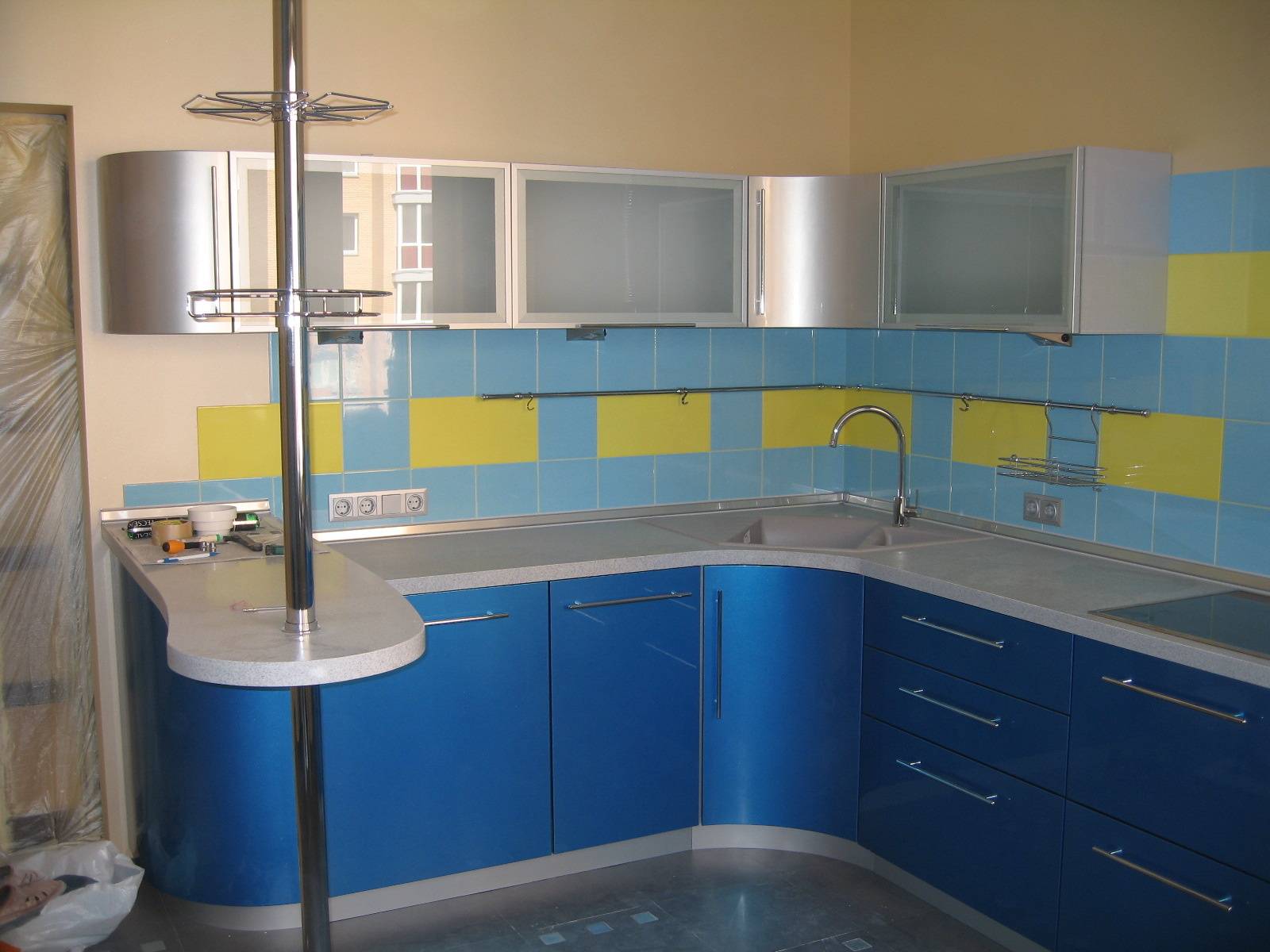Кухонный фартук синего цвета — будет неплохо смотреться при оформлении кухни в стиле прованс, шебби-шик, минимализм и хай-тек. В качестве отделочного материала можно использовать обычный кафель, закаленное стекло, декоративную штукатурку.