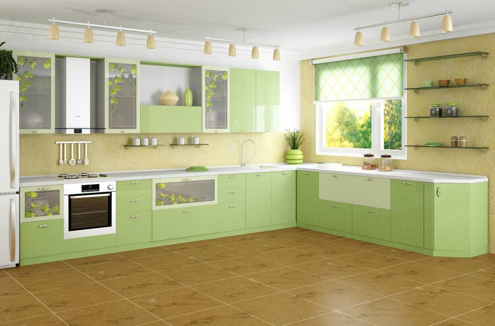 Салатовый. Броский летний оттенок, ассоциирующийся со свежестью. Салатовый цвет отлично подходит для кухонь, поскольку заряжает позитивом;