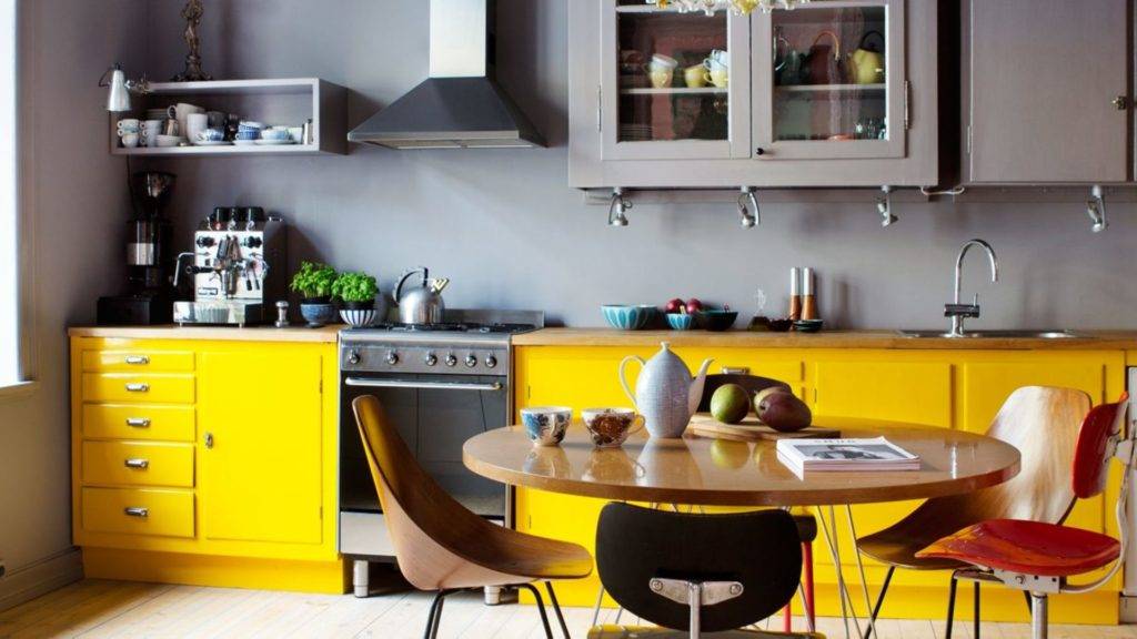 Оптимальными считаются нейтральные оттенки — золотистый, песочный, горчичный, серо-желтый. Сочные, кислотные оттенки желтого уместны на современной кухне. Для классики лучше выбирать приглушенные тона. Совет: если вам нравятся несколько оттенков желтого — всегда выбирайте тот, что светлее.