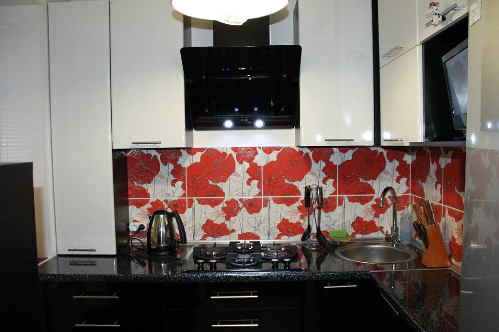 Цветочные мотивы. Цветы украсят любую кухню, большую и маленькую. Мелкий рисунок подойдет для небольшого помещения, а крупный — для просторного. Растительный орнамент бывает не только из реальных цветов, но и фантазийных.