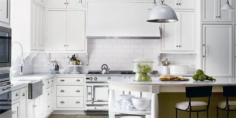 Светлые стены на кухне — хорошее решение при обустройстве помещения в стиле «прованс», «средиземноморском» стиле, «кантри», «минимализм» и «модерн». Мебель на такой кухне может быть контрастной, то же самое касается текстиля (если он присутствует), и декоративных элементов. В качестве отделочного материала стен лучше использовать штукатурку или краску. Подойдут также гипсовые монолитные панели.
