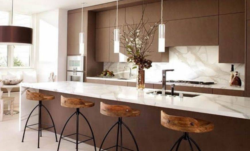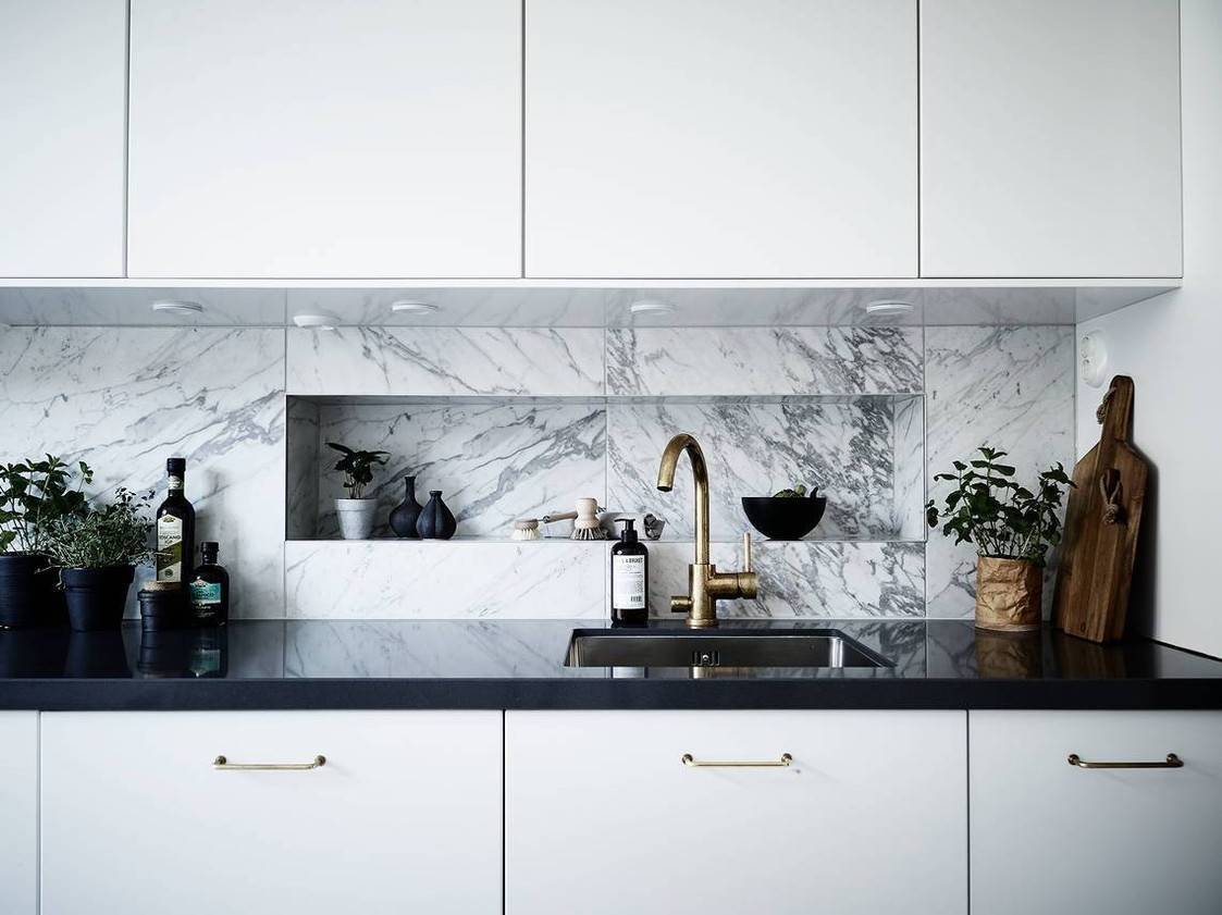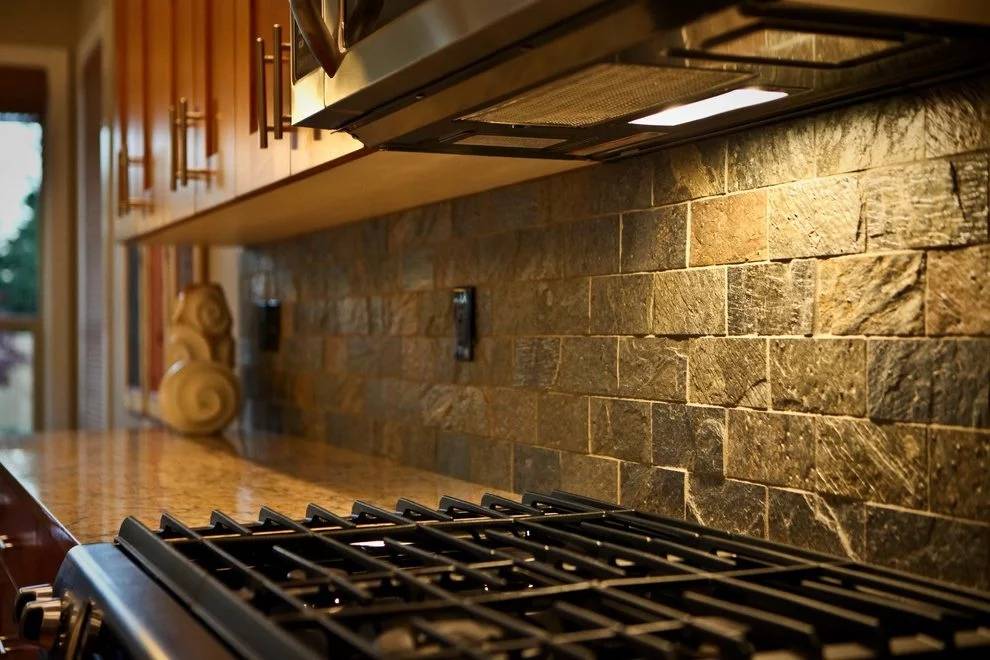 Натуральный и искусственный камень. Природные материалы стоят дорого и нечасто используются на фартуке кухни из-за большого веса и сложности обработки. Намного чаще применяют искусственный камень, который в разы дешевле и при этом не уступает по прочности и долговечности натуральному
