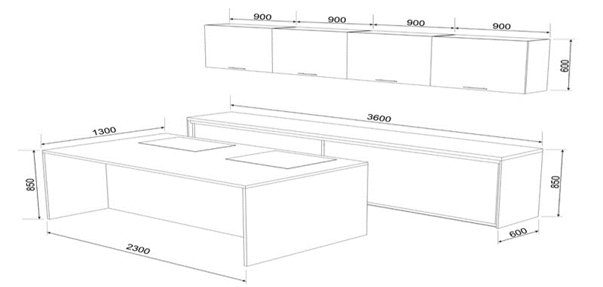 Столовая — важный элемент интерьера. Используйте тумбу со встроенной деревянной столешницей в качестве стола. Двухуровневая модульная конструкция позволяет с комфортом разместить членов семьи или принять гостей.