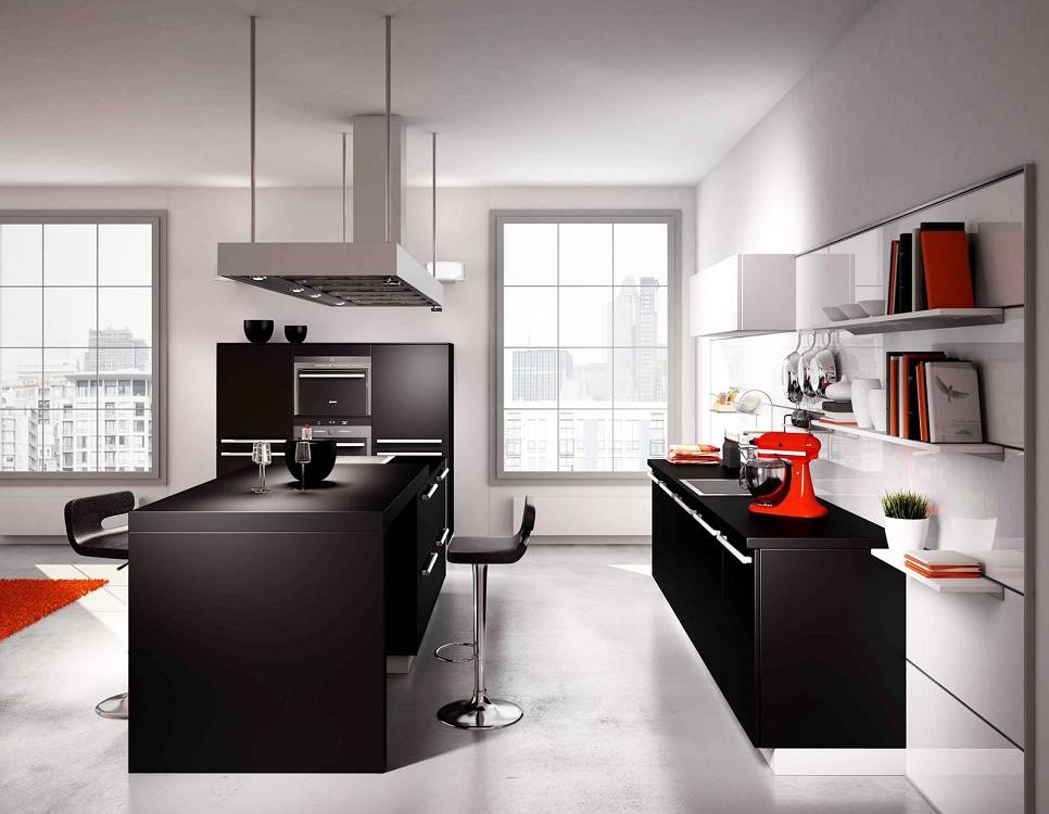 По-прежнему актуальна черная мебель. Черный цвет идеально сочетается с мрамором, гранитом, металлом, древесиной. Черная тумба острова, черные мебельные фасады, белые столешницы, закаленное стекло и нержавеющая сталь. Уникальный дизайн этой мебели — олицетворение лаконичности и шика.