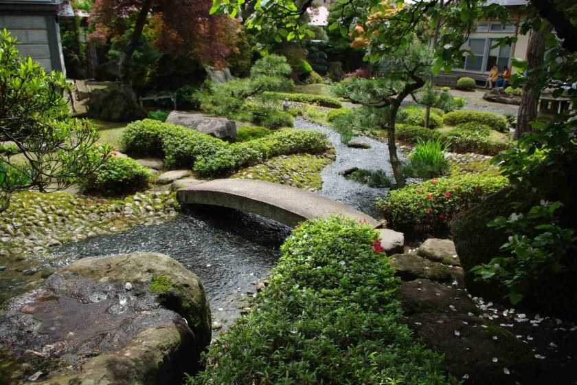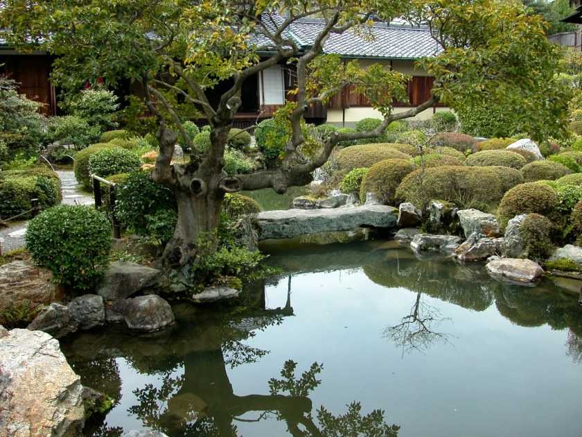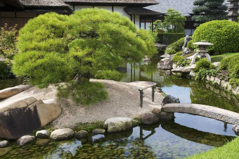 Для японского сада важно гармоничное сочетание трех элементов: воды, камней и растений. Для него характерна асимметричность и естественность