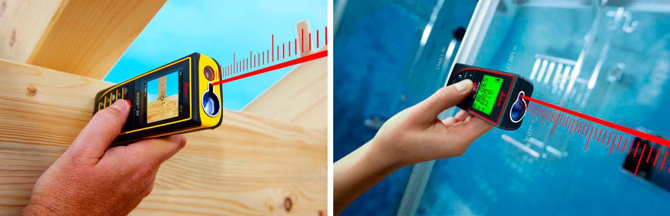 Помимо этого, лазерным дальномером можно измерять недоступные отрезки, которые измерить обычной или электронной рулеткой просто невозможно, к примеру, вычислить длину ската крыши, узнать высоту столба или посмотреть расстояние между этажами для последующего монтажа конструкции вывески.