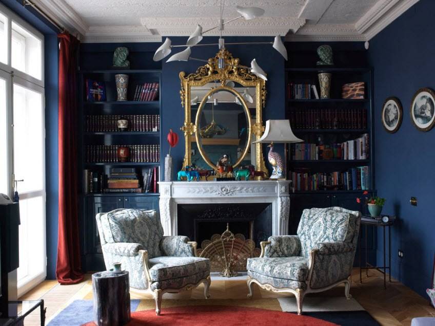 Лепнина в тёмном интерьереИсточник pinimg.com