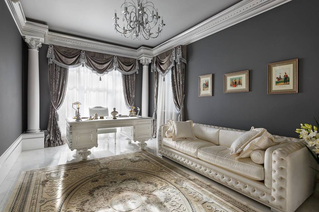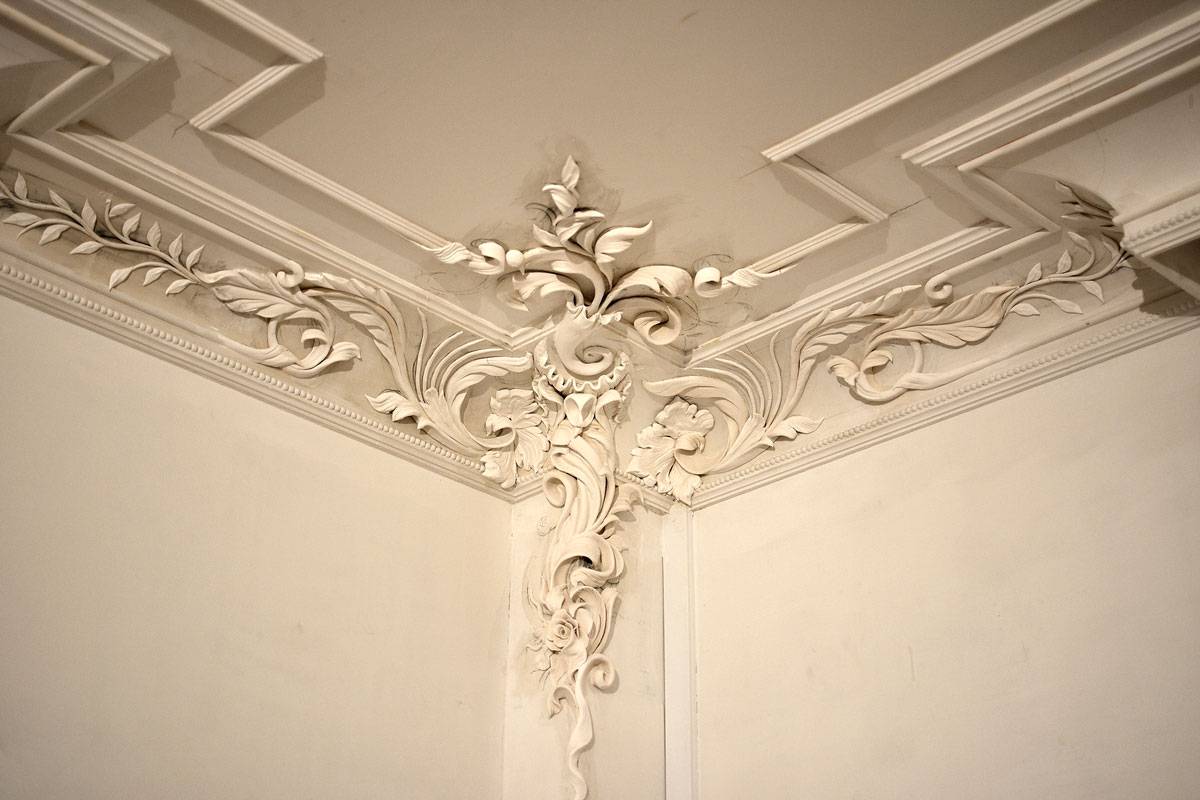 Лепной декор зрительно корректирует пропорции помещения и создает удивительно прекрасный акцент на потолочном пространстве.
