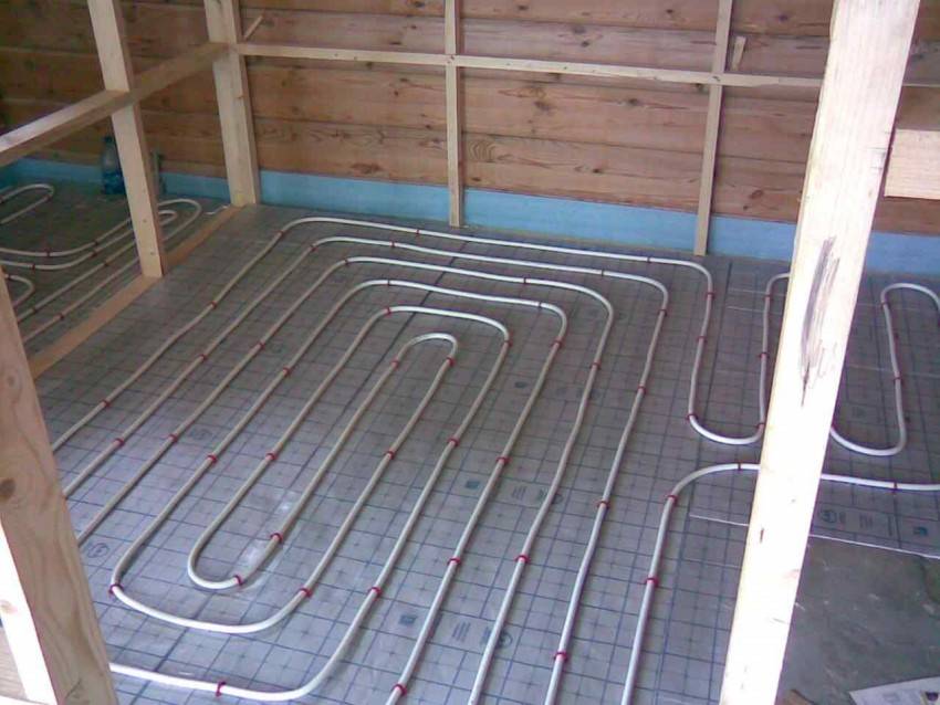 2. Другой, более эффективный способ — с закреплением на постеленный тонкий полиэтилен деревянных лаг, между которыми можно уложить пенопласт толщиной 50 ÷ 100 мм, керамзит или минеральную вату. Затем, такая тепло- и звукоизоляционная «шуба» закрывается сверху половой доской или фанерой, которая в свою очередь застилается одним из декоративных покрытий.