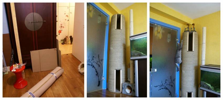 - Лучше, чтобы высота столба была не менее 1 метра, а лежанки и домики можно расположить еще выше.