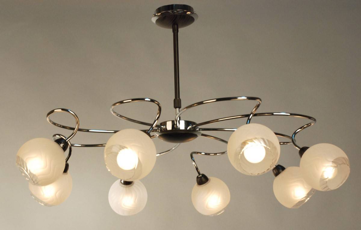 Кроме этого, следует учитывать и конструкцию люстры. Если осветительный прибор перегружен маленькими дополнительными элементами, он будет казаться меньше.