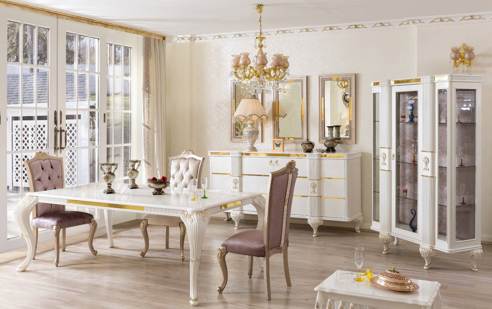 Столовая с золотой резной мебелью