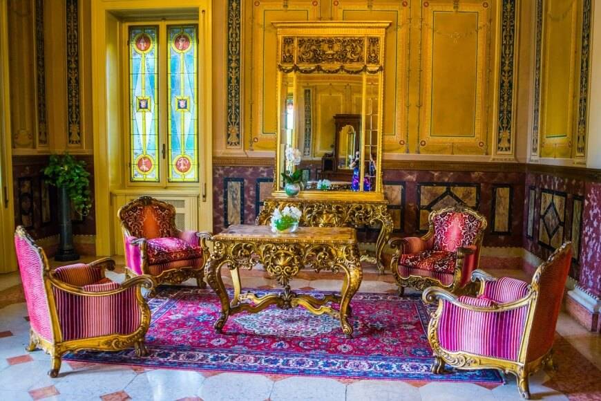Ослепительная роскошь: везде позолота, лепнина, рисунки, мрамор – всё это зачастую сливается в некоторые излишества, считающиеся, тем не менее, вполне нормальными. -