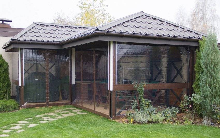 Важно! Использование мягких окон позволяет использовать беседку даже в зимнее время без необходимости снимать полотна.