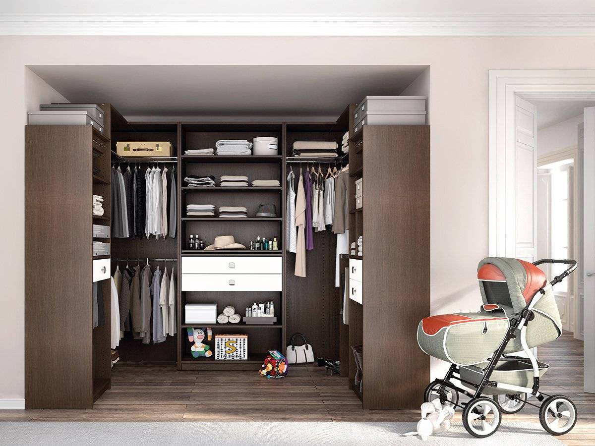 В высоту угловой шкаф должен достигать потолка, чтобы создавать внешнее единство пространства. Основным преимуществом высокой мебели является ее вместительность. В ней достаточно свободного места, чтобы компактно разместить все вещи, а открытые полочки очень удобно использовать для хранения обуви и различных мелочей.