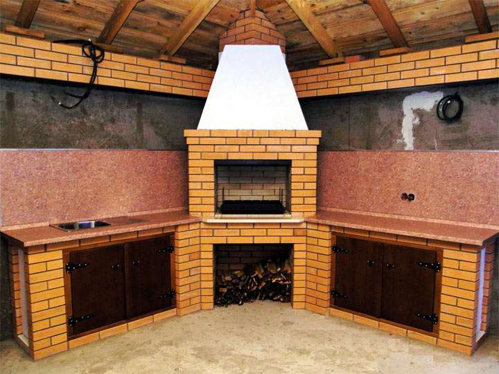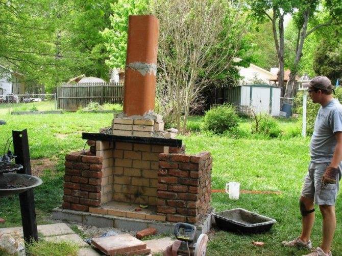Мангал из кирпича с дымоходом