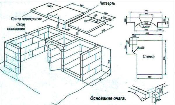 Когда выбрано место и определены размеры барбекю на дачном участке, чертеж должен быть составлен так, чтобы стали понятными тонкости создания уличного очага. В качестве основы для кирпичного или каменного мангала может быть использована порядовая схема печи-грубки. Если хочется построить очаг необычной формы (круглый, в виде камина, сварить из металла и т.п.), то чертежи придется создавать самостоятельно.