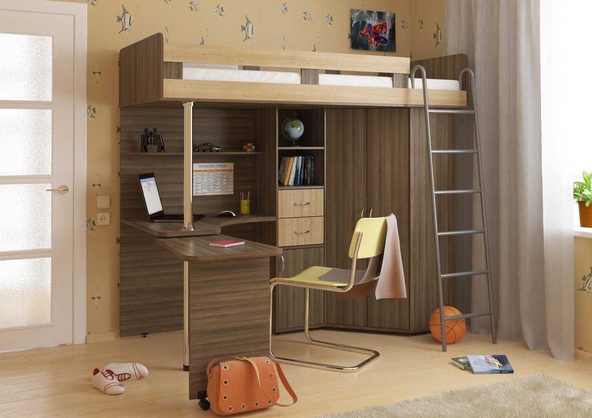 Универсальные наборы, предназначенные специально для подрастающего поколения, способны поместиться даже в самых маленьких комнатах. Как правило, в этих моделях спальное место находится на втором ярусе, а под ним располагаются вместительный гардероб, книжные полки и рабочий стол. Такое решение позволяет максимально эффективно использовать предназначенную для жилья площадь.