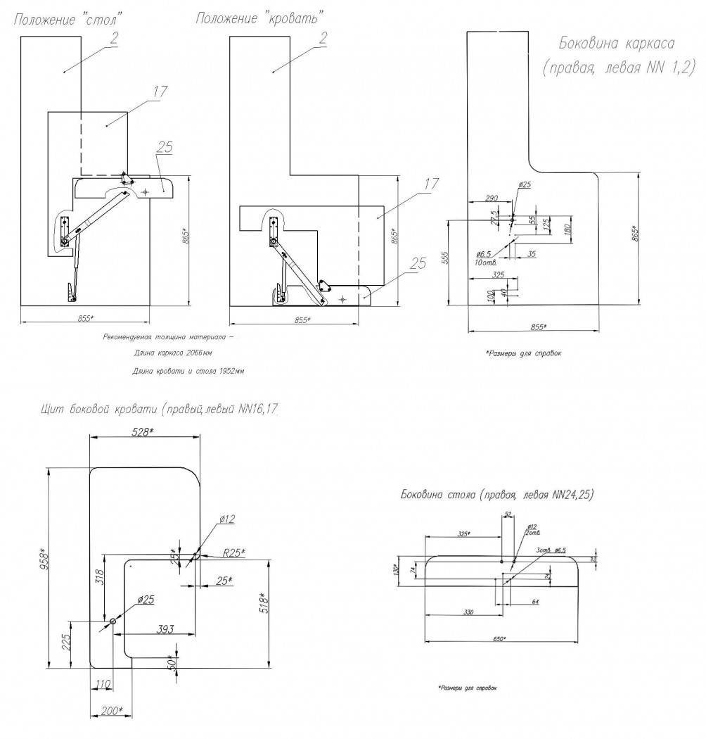 Главный материал – трансформационный механизм, который так и называется – механизм стол-кровать трансформер 591. Его можно приобрести в специализированных магазинах или заказать у поставщиков. Цена в среднем колеблется от трех с половиной до четырех тысяч рублей.