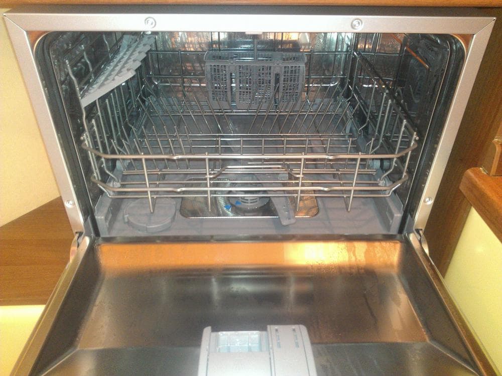 Настольная посудомойка — компактная машина габаритами с микроволновую печь. За цикл такая “малышка” в среднем очистит 5 комплектов посуды. Для семьи из трех человек или холостяка вполне достаточно.