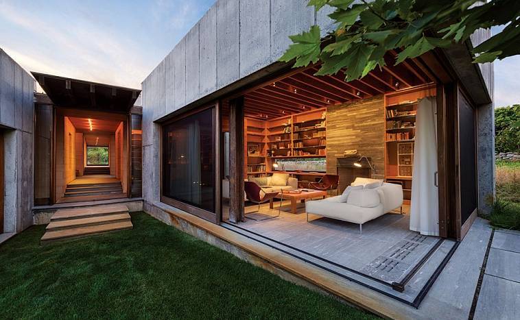 - Применение натуральных материалов для отделки по максимуму сопрягает дом с окружающей средой;